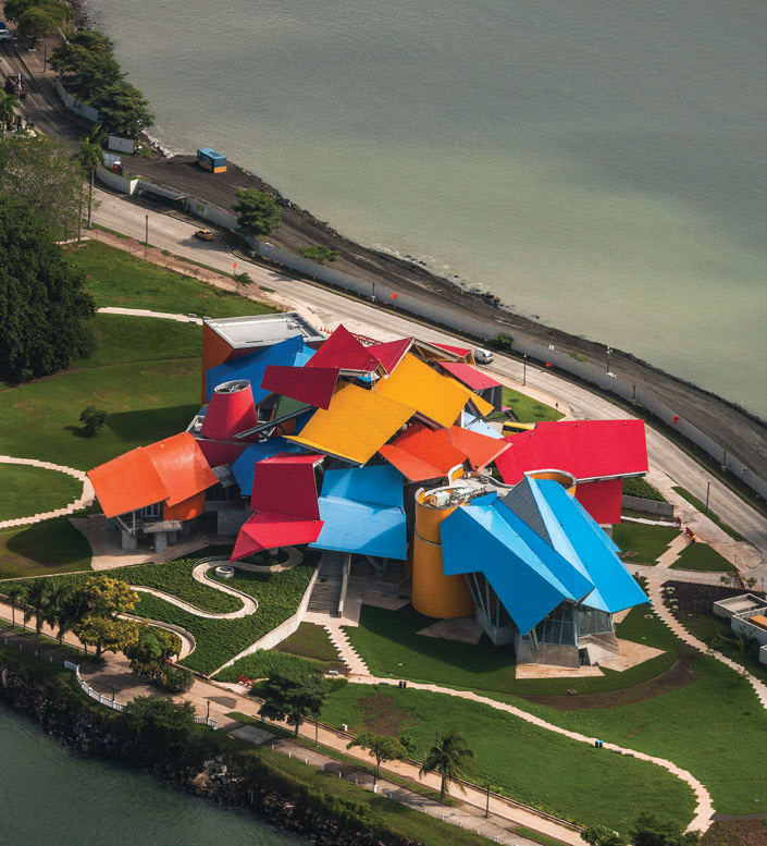 Situated at the opening of the Panama Canal, this is the world’s first museum dedicated to biodiversity. As multi-coloured and multi-faceted as Panama’s natural world, the 4,100 square-metre facility’s eight galleries spiral out from a central atrium sheltered by vibrant metal canopies. The site interacts with the neighbouring landscape, inviting visitors to explore the fertile surroundings.