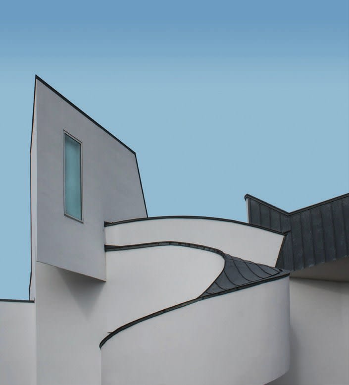 The Vitra Design Museum examines design’s relationship to architecture, art, and culture. The building was Gehry’s first in Europe. Clad in white plaster and a titanium–zinc alloy, with curved forms to break up his more usual angular shapes, it’s a subtle nod to the nearby Notre Dame du Haut chapel by Le Corbusier.